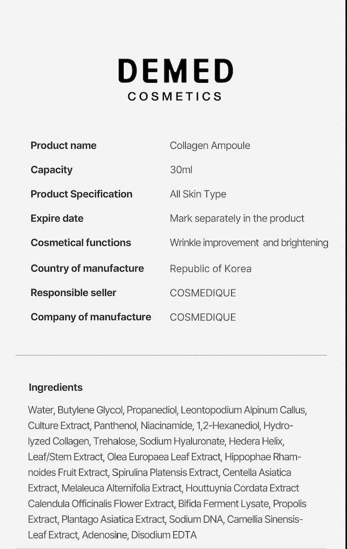 This Collagen Ampoule is a concentrated skincare treatment designed to boost skin elasticity and hydration. Formulated with high-quality collagen peptides, it supports the skin’s natural renewal process, helping to reduce the appearance of fine lines and wrinkles. Regular use promotes a firmer, smoother complexion, making it an essential step for maintaining youthful, resilient skin. Ideal for all skin types, this ampoule delivers targeted nourishment for visibly healthier skin.